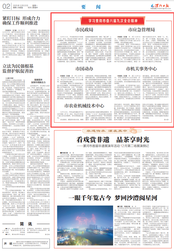 會議強調,學習貫徹市委八屆九次全會精神是當前和今后一個時期的重大政治任務。堅決把思想和行動統一到市委決策部署上來,在圍繞中心、服務大局上持續發力,為“十五五”規劃落地見效提供堅實后勤服務保障。要錨定服務中心,在保障大局上彰顯新作為。持續推進機關事務標準化建設,強化機關和一線服務人員專業技能培訓,切實提高服務保障全市重大政務活動的能力和水平。要聚焦提質增效,在改革創新上實現新突破。強化辦公用房摸底排查,高效盤活閑置資產,創新公務用車平臺監督模式,強化公共機構用能監督管理,推動更多服務事項“一網通辦”。要守牢安全底線,在規范管理上展現新擔當。嚴格落實安全生產責任制,樹牢過“緊日子”思想,切實把學習貫徹全會精神轉化為精準服務的具體行動、提質增效的實際成果。