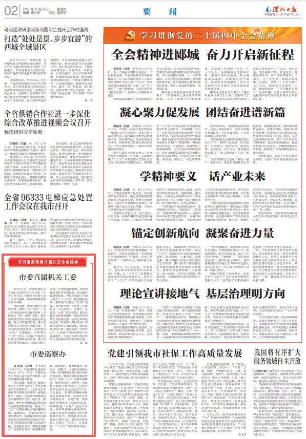 會(huì)議強(qiáng)調(diào),要通過開展理論學(xué)習(xí)中心組學(xué)習(xí)研討、舉辦巡察論壇交流等形式,讓全體黨員干部在深學(xué)細(xì)悟全會(huì)精神上展現(xiàn)新作為,使每一名巡察干部都成為全會(huì)精神的學(xué)習(xí)者、踐行者、推動(dòng)者。要把全會(huì)精神落實(shí)情況納入巡察監(jiān)督重要內(nèi)容,錨定“十五五”時(shí)期經(jīng)濟(jì)社會(huì)發(fā)展遵循原則、戰(zhàn)略取向、主要目標(biāo)和13項(xiàng)重要任務(wù),緊扣被巡察單位職責(zé)職權(quán)及承擔(dān)的改革發(fā)展任務(wù),在深化拓展政治監(jiān)督上實(shí)現(xiàn)新突破,找準(zhǔn)監(jiān)督方向、謀深監(jiān)督重點(diǎn)、創(chuàng)新監(jiān)督方式,推進(jìn)靶向監(jiān)督、精準(zhǔn)施巡,著力解難點(diǎn)、清淤點(diǎn)、破阻點(diǎn),以更高標(biāo)準(zhǔn)推動(dòng)市委一系列路線圖變?yōu)殇鸷影l(fā)展的實(shí)景圖。要深化巡察成果綜合運(yùn)用,堅(jiān)持“1+2”巡察成果模式,聚焦系統(tǒng)性、領(lǐng)域性、制度性問題深入調(diào)查研究,在服務(wù)保障發(fā)展大局上邁出新步伐,以行業(yè)性、領(lǐng)域性問題解決推動(dòng)完善系統(tǒng)治理,在服務(wù)大局中找準(zhǔn)方向、實(shí)現(xiàn)價(jià)值。要在鍛造巡察鐵軍上取得新成效,縱深推進(jìn)“三化”建設(shè)年行動(dòng),持續(xù)鞏固深化建設(shè)成果,在踐行落實(shí)全會(huì)精神過程中磨礪政治擔(dān)當(dāng)、增強(qiáng)監(jiān)督本領(lǐng)、錘煉過硬作風(fēng),擦亮巡察品牌,為我市“十四五”完美收官、“十五五”順利開局貢獻(xiàn)力量。