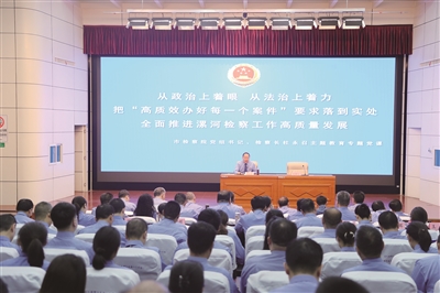宏偉藍圖激蕩人心,號角聲聲催人奮進。站在新的歷史起點上,市人民檢察院黨組書記、檢察長杜永召表示,全市檢察機關將始終胸懷“國之大者”,牢牢把握以檢察工作現代化服務中國式現代化的中心任務,持續深化“高質效辦好每一個案件”的價值追求,不斷提升法律監督能力,以更高站位服務發展大局,以更實舉措增進民生福祉,以更大力度維護公平正義,以更嚴要求鍛造過硬隊伍,全力書寫新時代新征程檢察工作高質量發展新篇章,為奮力開創中國式現代化漯河建設新局面提供有力法治保障。